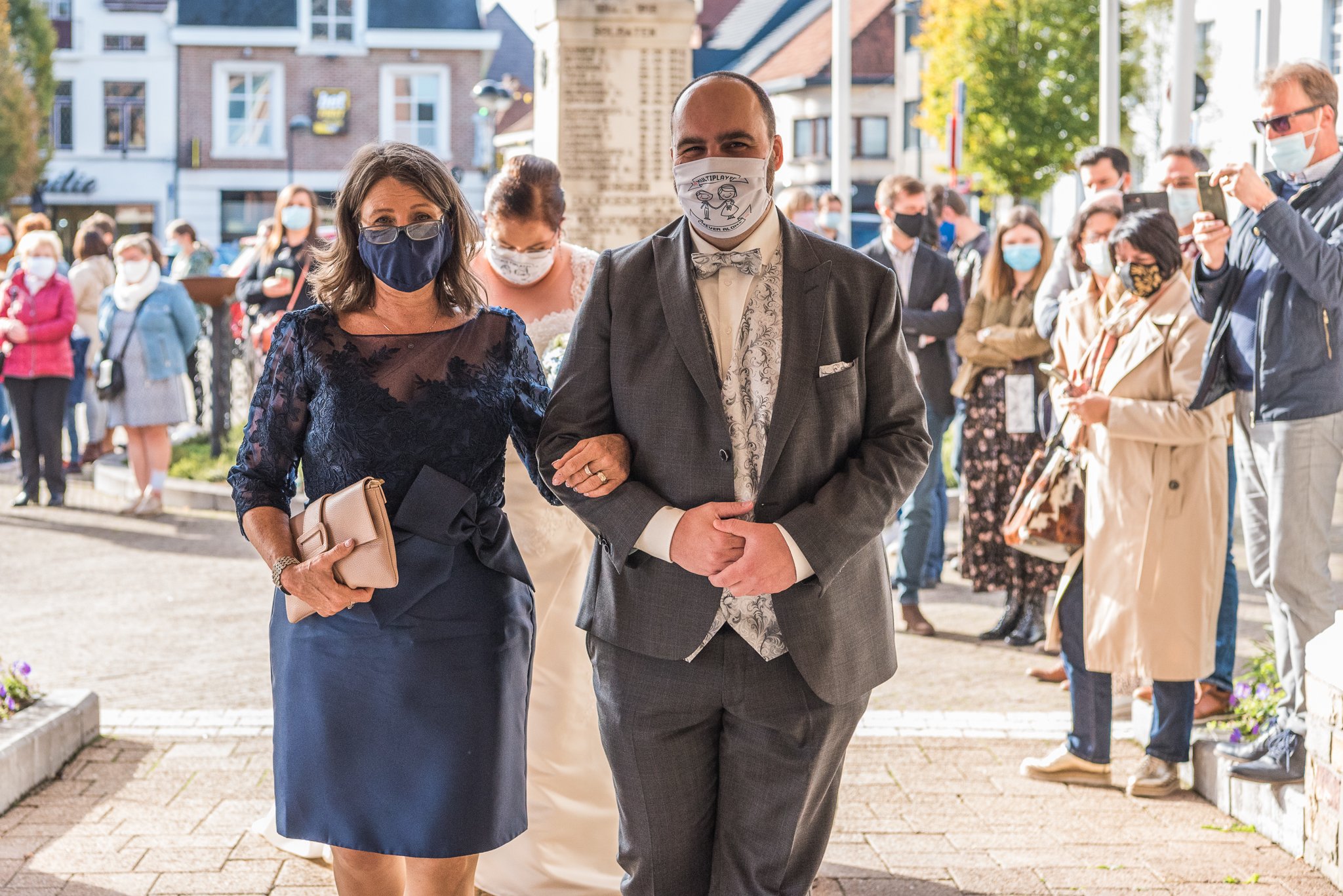 Bij aankomst aan het gemeentehuis stonden er al heel wat geliefden hen op te wachten... mooi in bubbels verdeeld over het plein. Voor mij was dit het moment om even gas te geven. Ik wou van zoveel mogelijk momenten foto's maken.