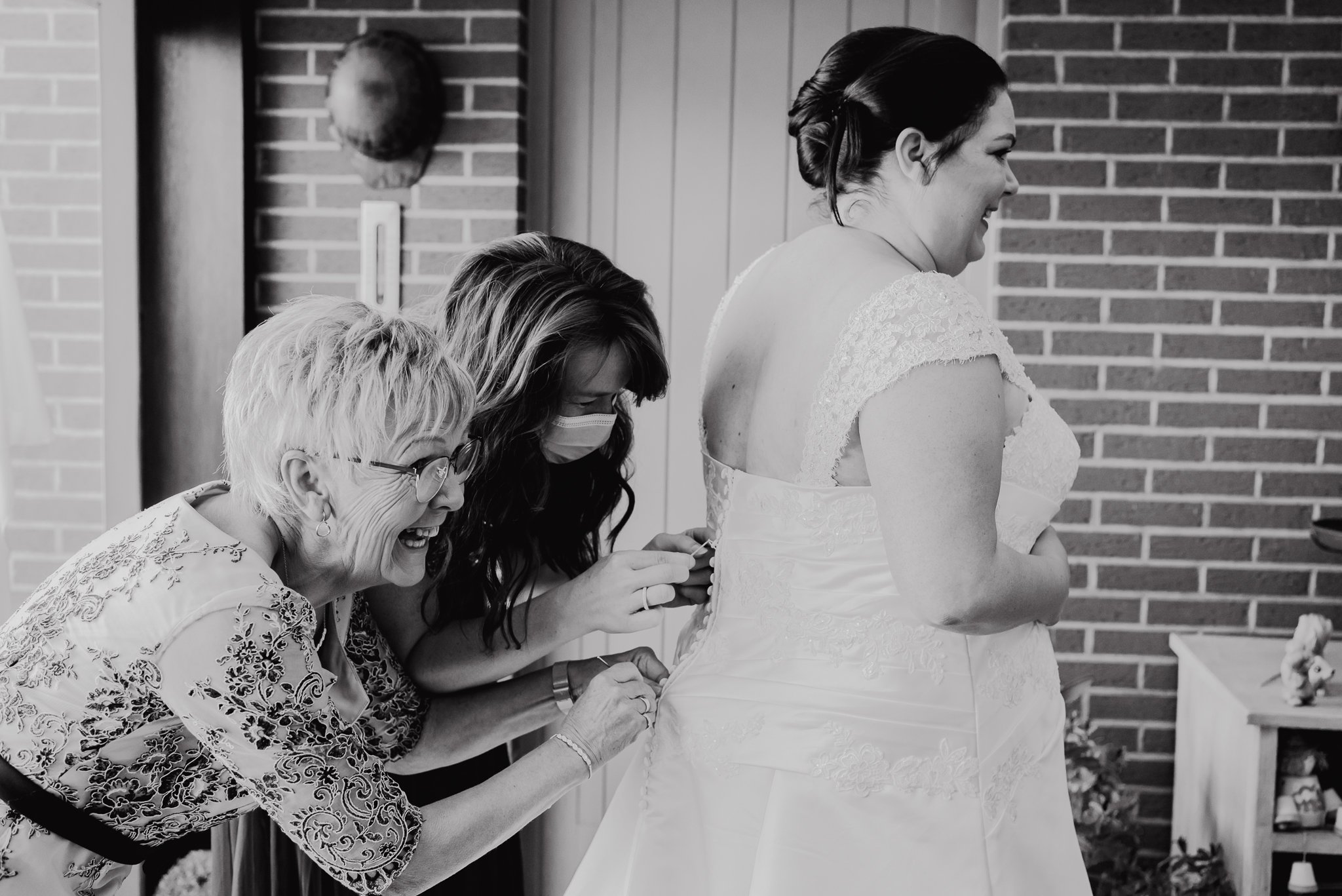De jurk hebben we gepresenteerd in de veranda die zo gezellig was ingericht. Een tof moment toen de mama en de getuige Liesbet hielp om de jurk aan te trekken.