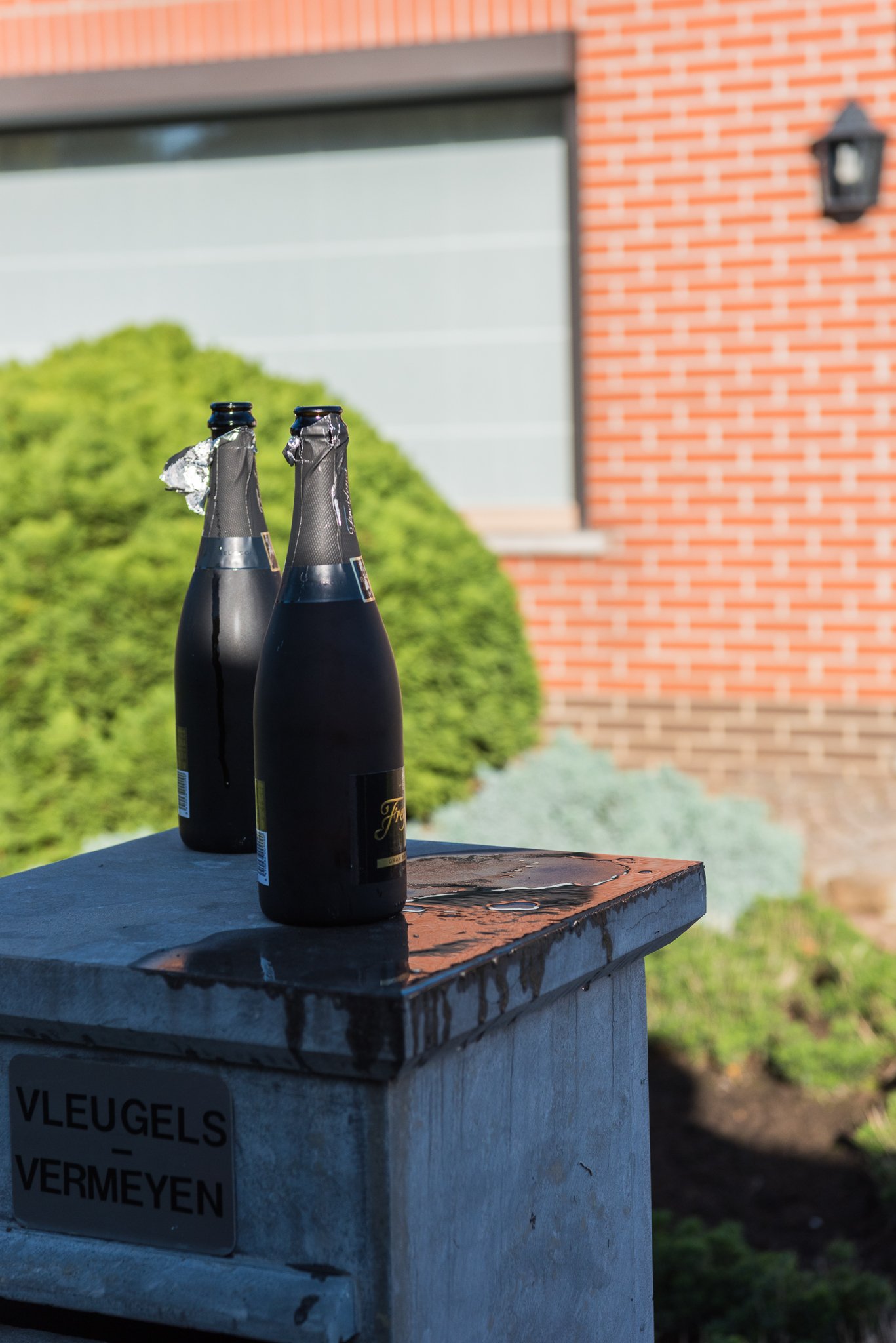 Tim en ik stonden klaar. De bus kwam aan, Stijn ging klaar staan en belde aan. Geweldig te zien hoe ze elkaar complimenteerde. De flessen cava werden open getrokken en iedereen kon de keel smeren met wat lekkers voor vertrek richting gemeentehuis.