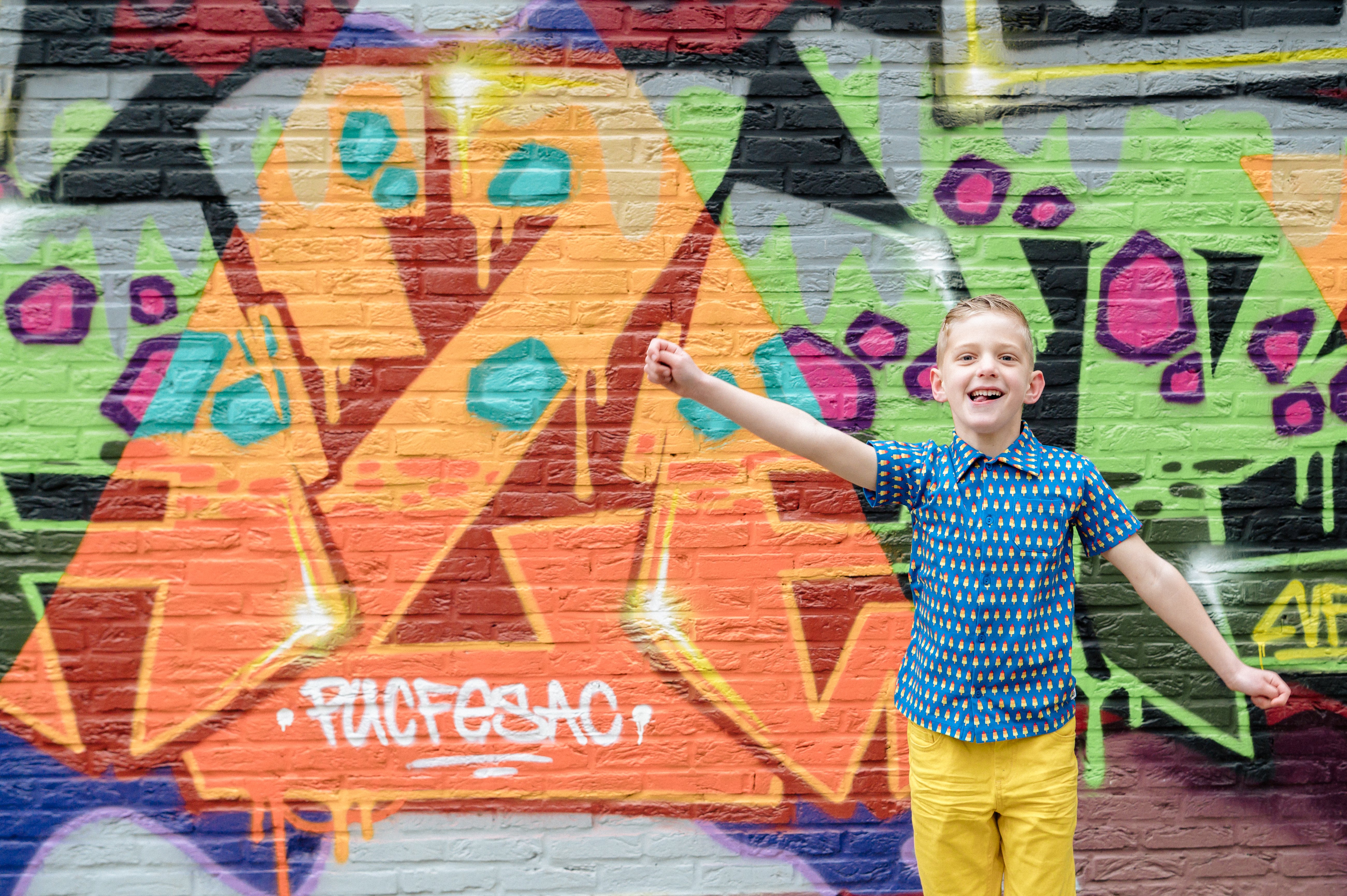 Lucas Graffiti in combinatie met spelen? Graag! Dat was een goed idee van Lucas!Vrolijke foto's zijn het resultaat. (geheimpje: zou je geloven dat het ijskoud was op dit moment?)